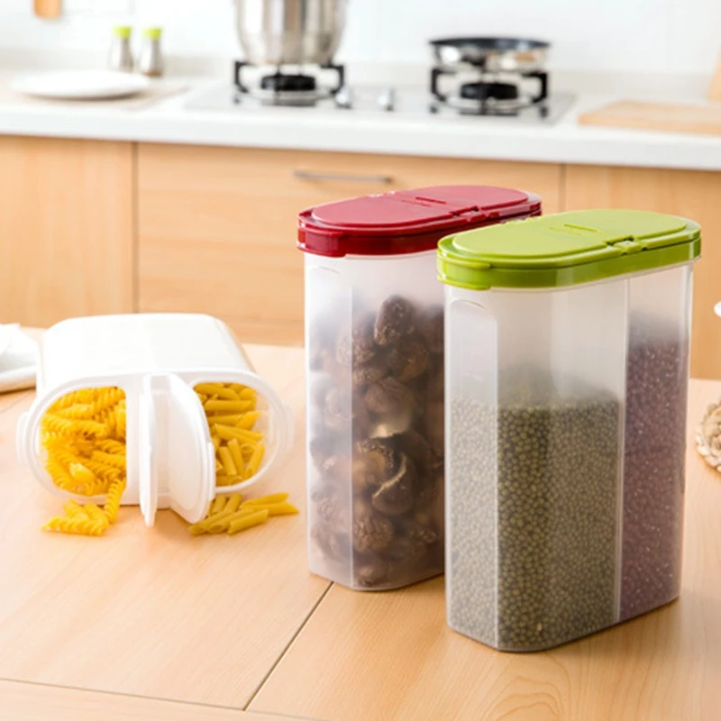 Hot Sale 2 Pcs Food Storage Container Kitchen Cereal Pasta Noodle Grain Bean Rice Sealed Box 23X8X19.5Cm & 1