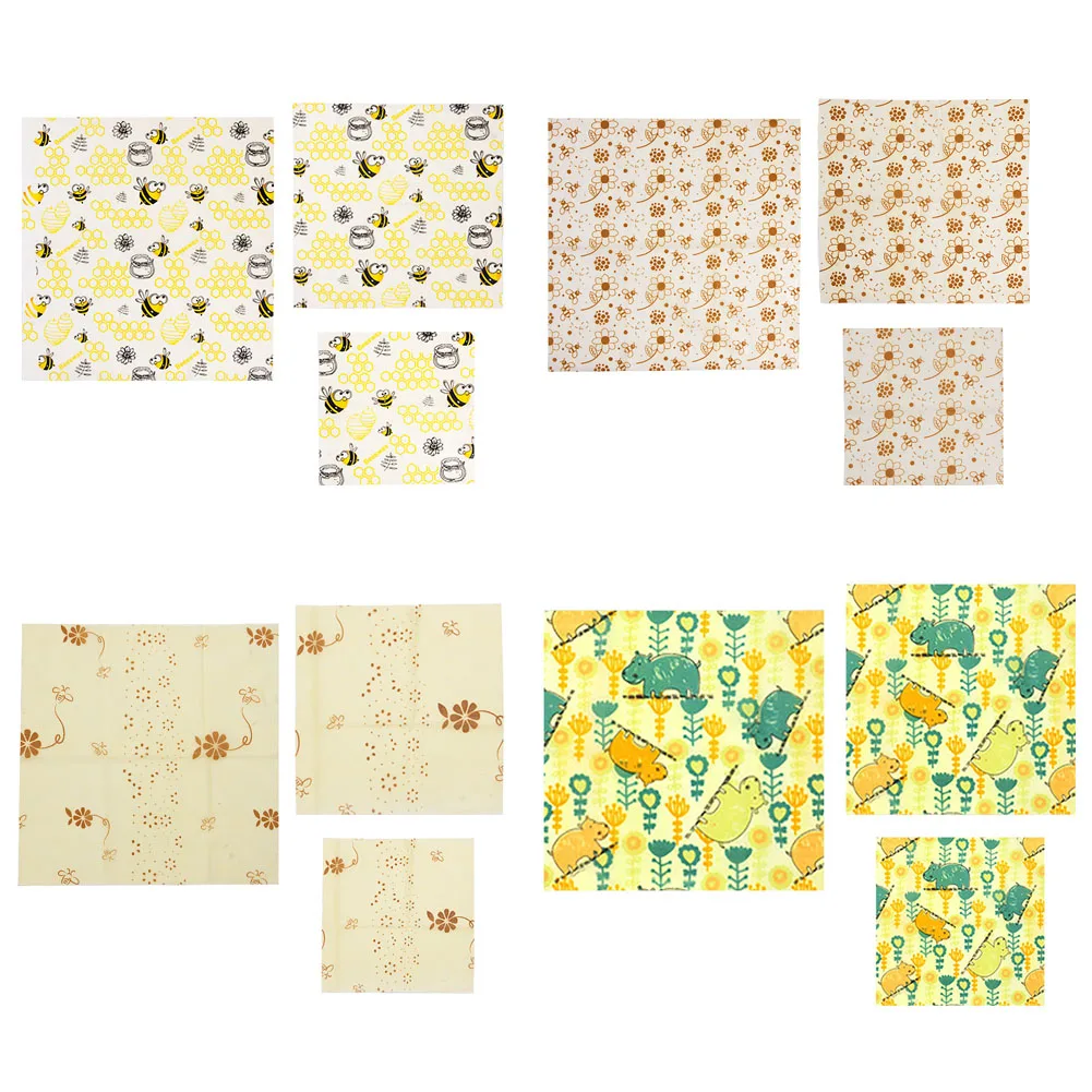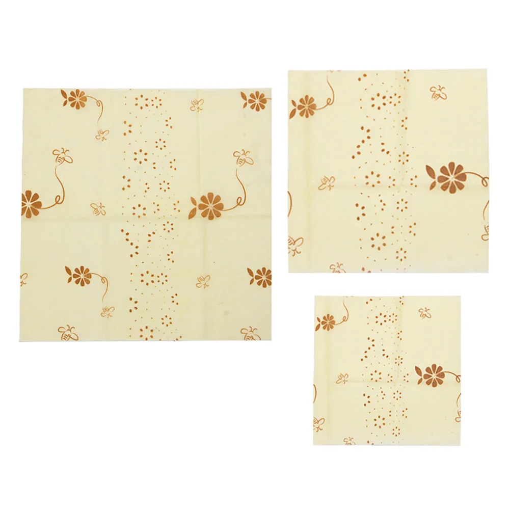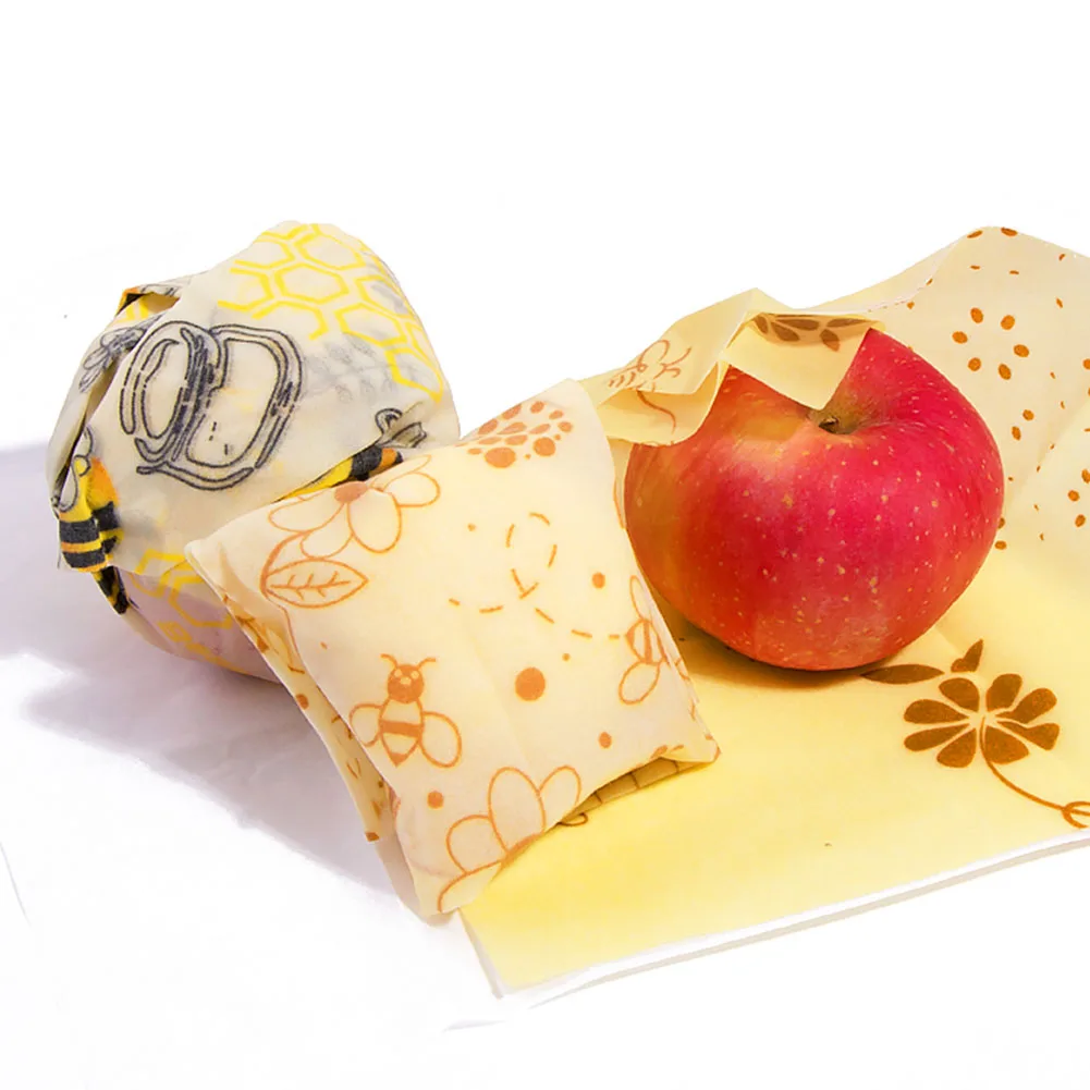 3pcs Printing Reusable Beeswax Food Wraps Storage Fresh Bag Lid Cover Fruit Snack Seal Plastic Wrap