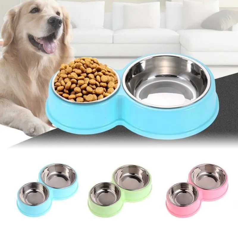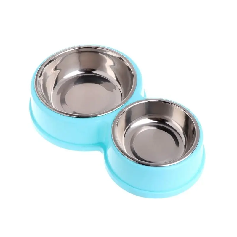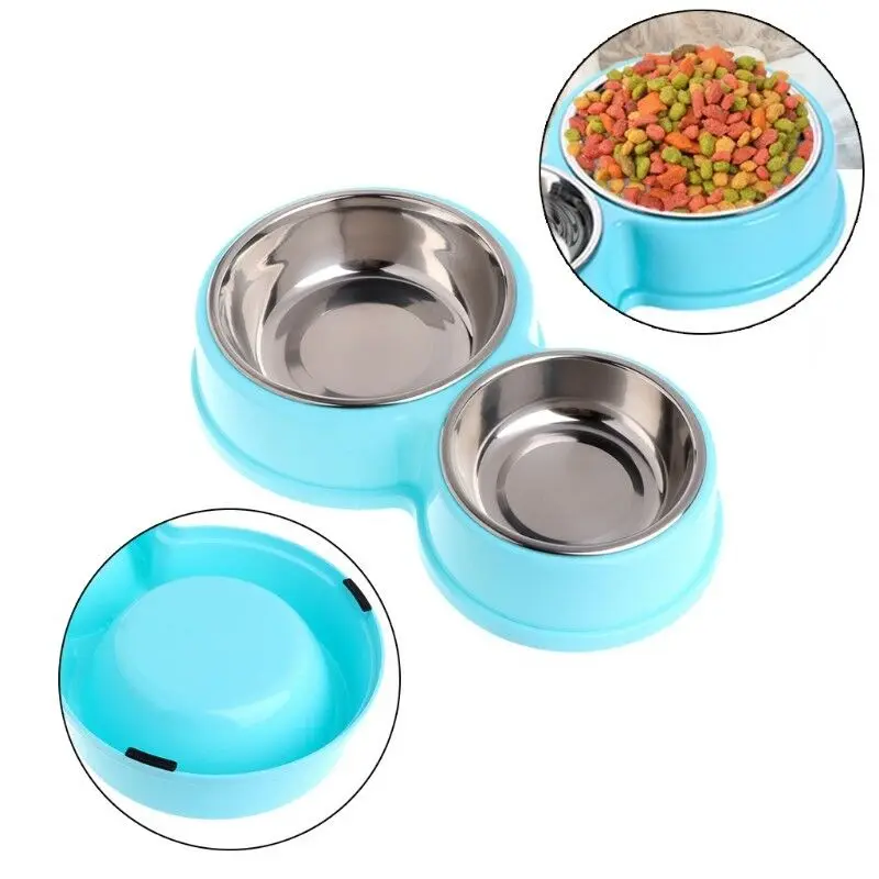 Pet Feeding Double Bowl With Stainless Steel Food Water Feeder For Dog Cat Puppy